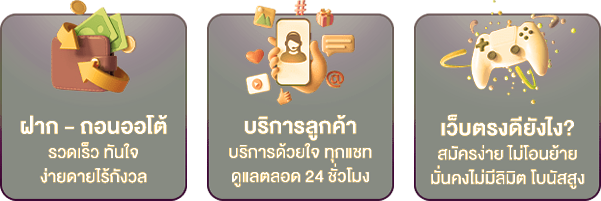 ตอบ : - มีเกมสล็อต คาสิโนสด กีฬา เกมไพ่ หวย และเกมยิงปลา พร้อมระบบฝาก-ถอนอัตโนมัติ 24 ชั่วโมง